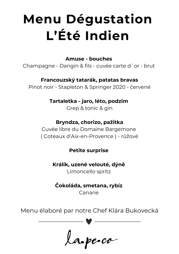 Amuse-bouches & šestichodové menu 1390,-/ osoba & párování vina & drinks 899,-/ osoba.